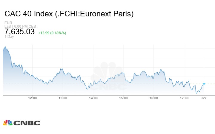 في حين ارتفع مؤشر CAC 40 الفرنسي بنحو 13.99 نقطة أو بنسبة 0.18% عند الإغلاق إلى مستوى 7635.03 نقطة.