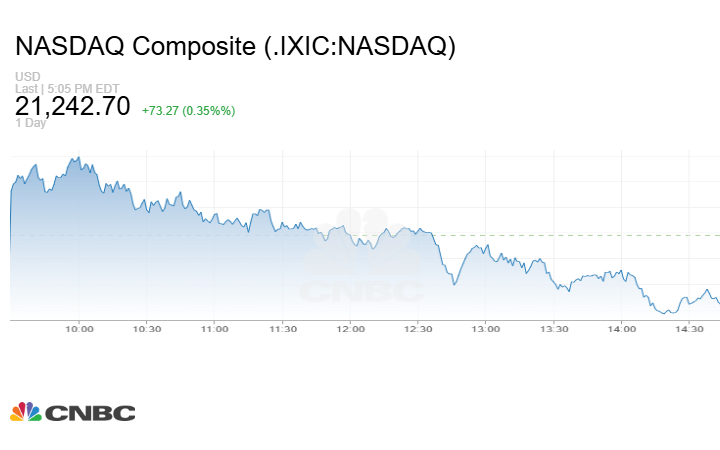 بينما زاد مؤشر Nasdaq المركب عند الإغلاق بنحو 73.27 نقطة أو بنسبة 0.35% إلى 21242.70 نقطة.