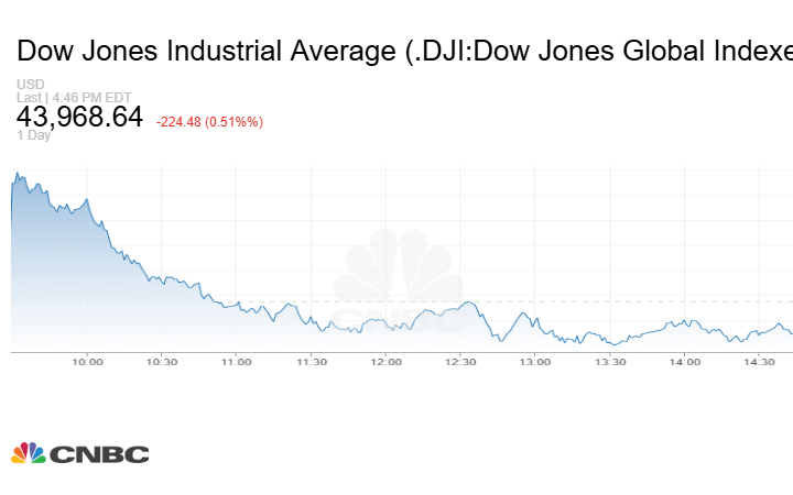 انخفض مؤشر Dow Jones الصناعي بنحو 224.48 نقطة أو بنسبة 0.51% عند إغلاق تعاملات الخميس إلى 43968.64 نقطة.