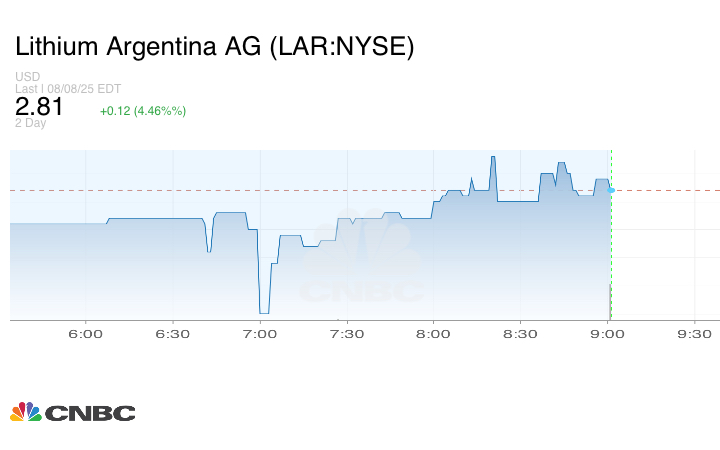 وشهدت أسهم CATL ارتفاعاً بنسبة 2.2% يوم الاثنين في هونغ كونغ. وارتفعت أسهم شركتي إنتاج الليثيوم، غانفينغ ليثيوم وتيانكي ليثيوم، المدرجتين في بورصة هونغ كونغ، بنسبة 20.6% و15.9% على التوالي.