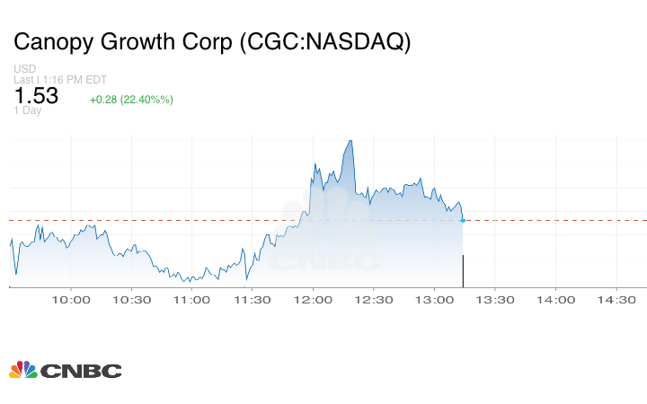 ارتفعت أسهم Canopy Growth وTilray Brands بأكثر من 12% لكل منهما. وقفزت أسهم Cronos Group بأكثر من 5% مسجلةً أعلى مستوى لها في 52 أسبوعاً في بداية التداول. وارتفعت أسهم AdvisorShares Pure U.S. Cannabis ETF (MSOS) وAmplify Alternative Harvest ETF (MJ) بأكثر من 10% لكل منهما.