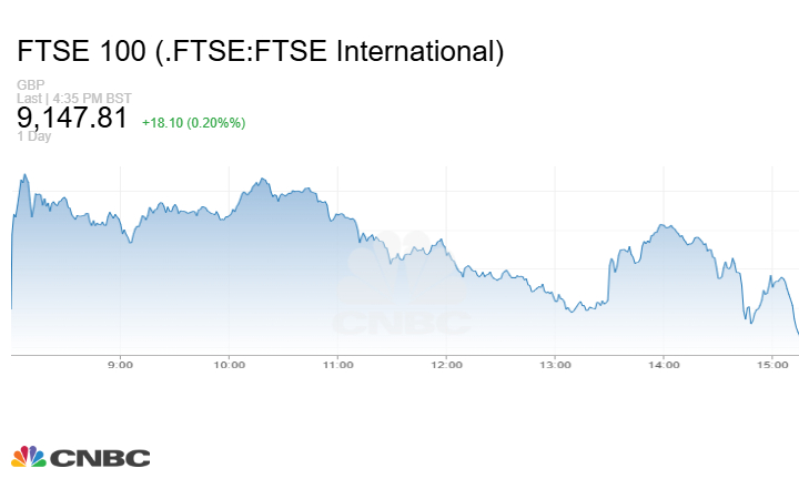 وصعد مؤشر FTSE 100 البريطاني 18.10 نقطة أو بنسبة 0.20% عند الإغلاق إلى مستوى 9147.81 نقطة.
