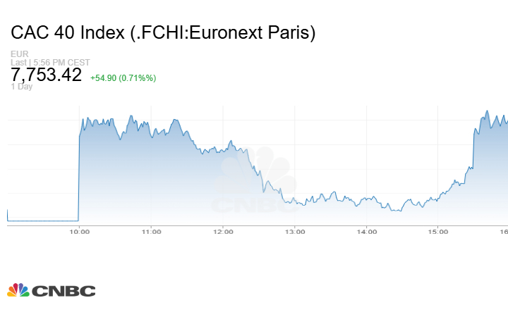 في حين زاد مؤشر CAC 40 الفرنسي بنحو 54.90 نقطة أو بنسبة 0.71% عند الإغلاق إلى مستوى 7753.42 نقطة.