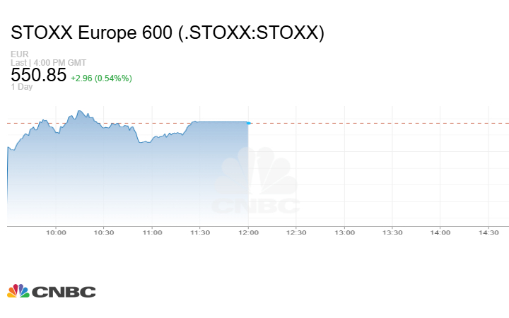 وارتفع مؤشر Stoxx 600 الأوروبي 2.96 نقطة أو بنسبة 0.54% إلى مستوى 550.85 نقطة في نهاية التعاملات.