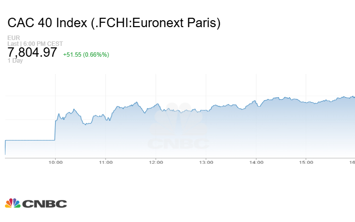 في حين زاد مؤشر CAC 40 الفرنسي بنحو 51.55 نقطة أو بنسبة 0.66% عند الإغلاق إلى مستوى 7804.97 نقطة.