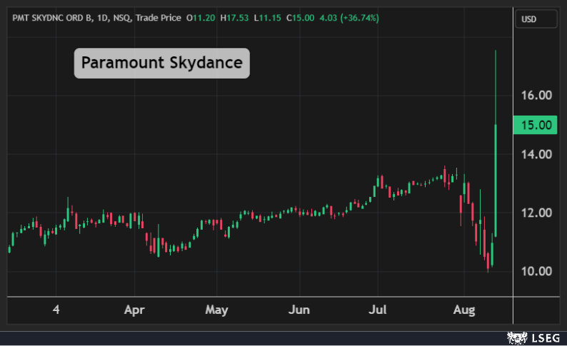 قفز سهم Paramount Skydance بنسبة 37% في جلسة الأربعاء محققاً أعلى مكاسب يومية في تاريخه،