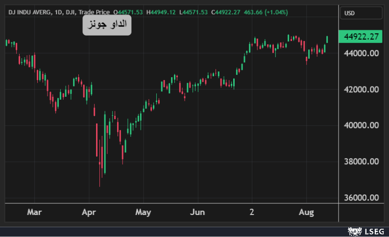 ارتفع مؤشر الداو جونز بنسبة 1.04% أي ما يعادل نحو 463 نقطة في جلسة الأربعاء مسجلاً أعلى إغلاق يومي في 3 أسابيع.