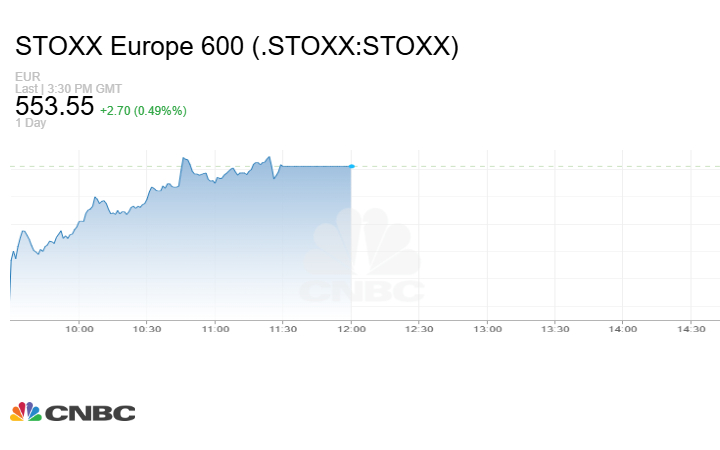 وارتفع مؤشر Stoxx 600 الأوروبي 2.70 نقطة أو بنسبة 0.49% إلى مستوى 553.55 نقطة في نهاية التعاملات.