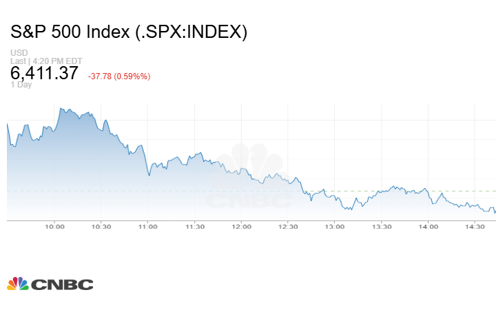 بينما أغلق مؤشر S&P 500 التعاملات على تراجع 37.78 نقطة أو بنسبة 0.59% إلى 6411.37 نقطة.
