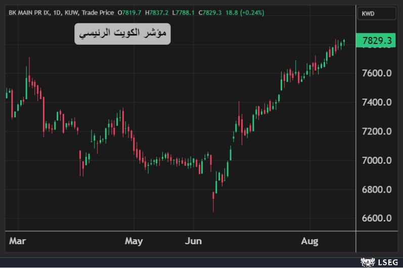 مؤشر الكويت الرئيسي يحقق إغلاقاً قياسياً جديداً
