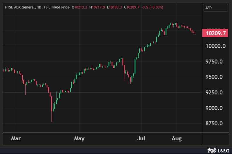 وجاء الضغط بشكل رئيسي من القطاع المصرفي مع انخفاض سهمي أبوظبي التجاري وأبوظبي الإسلامي بنسبة 1.4% و1.6% على التوالي.