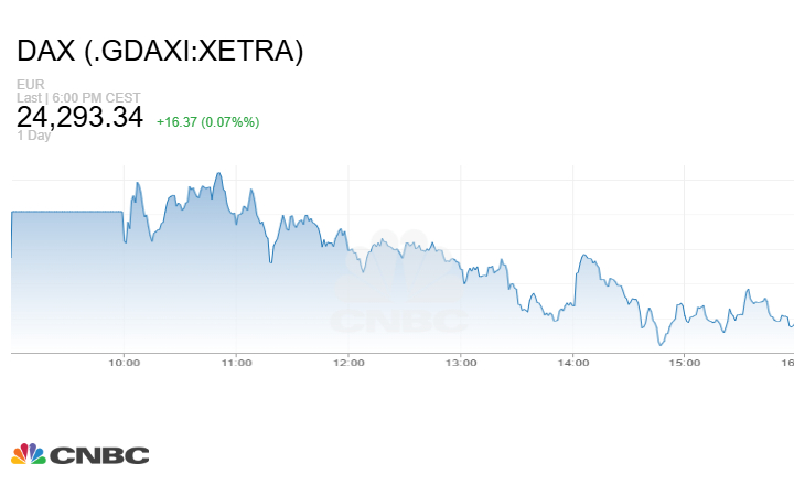 وأغلق مؤشر DAX الألماني الجلسة على صعود 16.37 نقطة أو بنسبة 0.07% إلى مستوى 24293.34 نقطة.