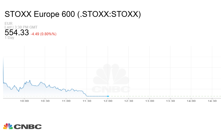 وانخفض مؤشر Stoxx 600 الأوروبي 4.49 نقطة أو بنسبة 0.80% إلى مستوى 554.33 نقطة في نهاية التعاملات.
