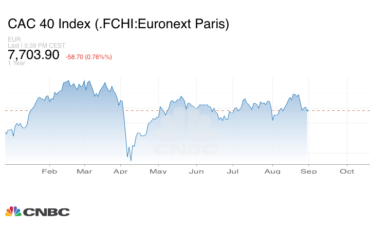 وأثرت المخاوف بشأن الانهيار المحتمل للحكومة الفرنسية واستقلالية مجلس الاحتياطي الفيدرالي الأميركي على المؤشر هذا الأسبوع.