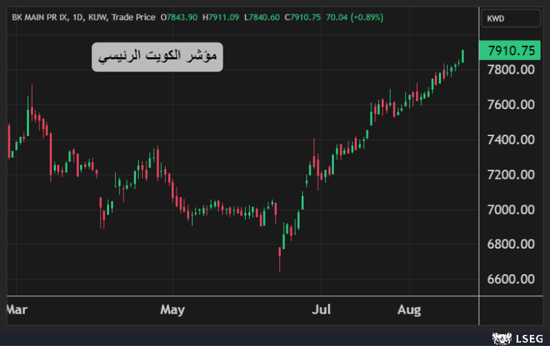 ارتفع مؤشر الكويت الأول بنسبة 0.15% في جلسة الإثنين لينهي سلسلة خسائر يومية استمرت لـ 8 جلسات متتالية ليغلق فوق مستويات 9100 نقطة بدعم من ارتفاع سهمي عقارات الكويت وأرزان بنحو 2% و3% على التوالي.