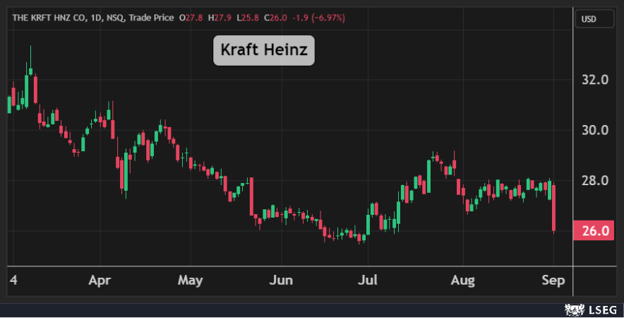 هبط سهم Kraft Heinzبنسبة 7% في جلسة الثلاثاء ليتكبد أكبر خسارة يومية في أكثر من 3 سنوات وتفقد الشركة 2.3 مليار دولار من قيمتها السوقية في يوم واحد.