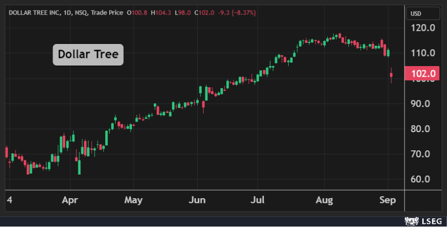 هبط سهم Dollar Tree بنسبة 8% في جلسة الأربعاء ليتكبد أكبر خسارة يومية في 3 أشهر بعد توقعات مخيبة لآمال المستثمرين.