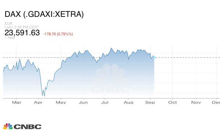 كما أغلق مؤشر DAX الألماني الجلسة على تراجع بنسبة 0.7% إلى 23.591.62 نقطة.