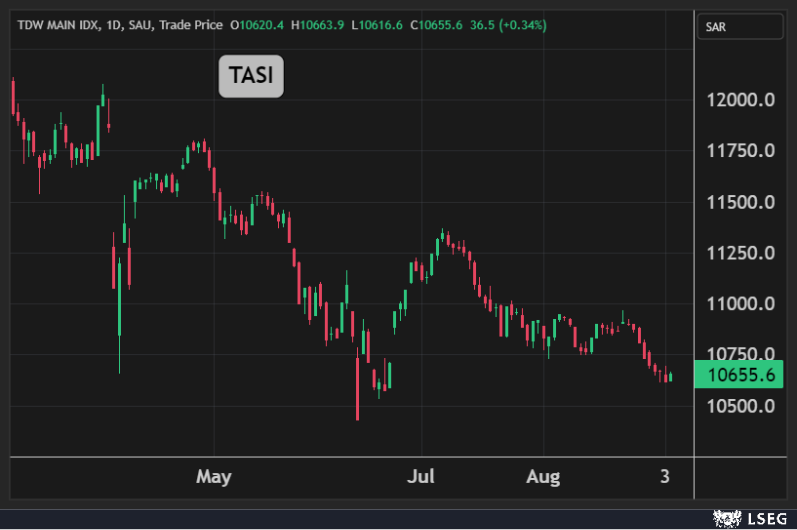 وعلى مدار الأسبوع، تراجع المؤشر السعودي بنسبة 0.7% مسجلاً ثاني خسارة أسبوعية على التوالي وأدنى إغلاق أسبوعي في أكثر من شهرين.