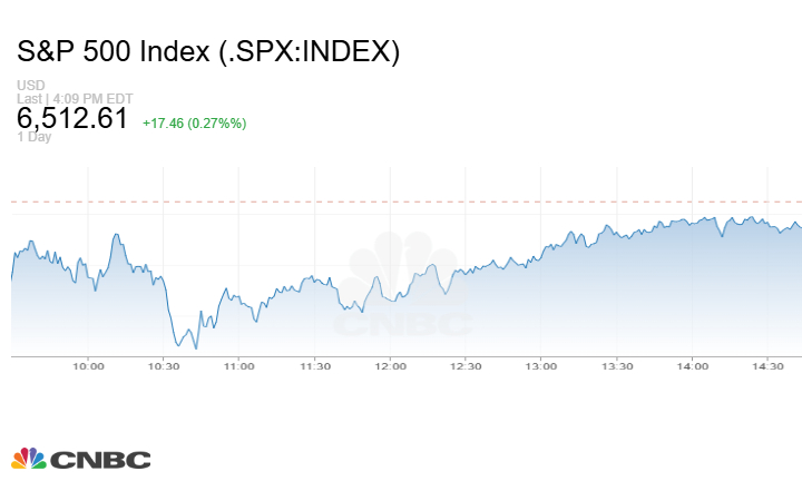 كما أغلق مؤشر S&P 500 التعاملات على صعود 17.46 نقطة أو بنسبة 0.27% إلى 6512.61 نقطة.
