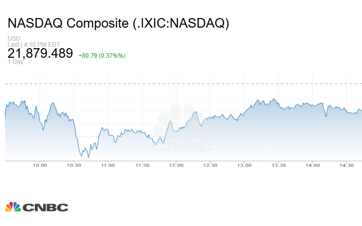 وارتفع مؤشر Nasdaq المركب عند الإغلاق بنحو 80.79 نقطة أو بنسبة 0.37% إلى 21879.49 نقطة.