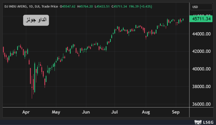 ارتفع مؤشر الداو جونز بنسبة 0.4% أي ما يعادل 196 نقطة في جلسة الثلاثاء ليغلق فوق مستويات 45700 نقطة لأول مرة في تاريخه.