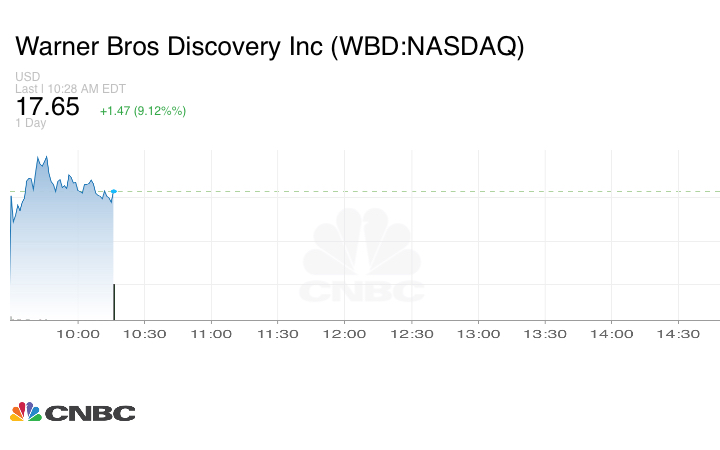 ارتفعت أسهم الشركة المالكة لـ HBO Max بنسبة 8% تقريباً بعد ارتفاعها بنسبة 29% يوم الخميس. أفادت قناة CNBC يوم الخميس أن شركة باراماونت سكاي دانس تُعدّ عرضًا لشراء وارنر براذرز ديسكفري.