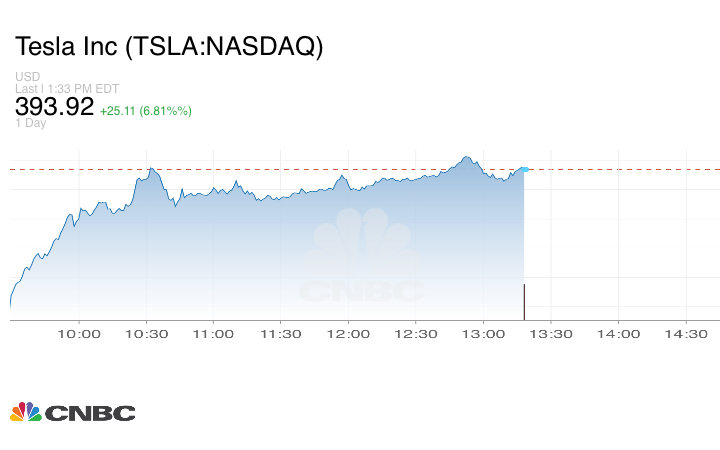 ارتفعت أسهم شركة السيارات الكهربائية تسلا بنسبة 6%، خلال تعاملات الجمعة 13 سبتمبر/ أيلول لتوسع مكاسبها الأخيرة.