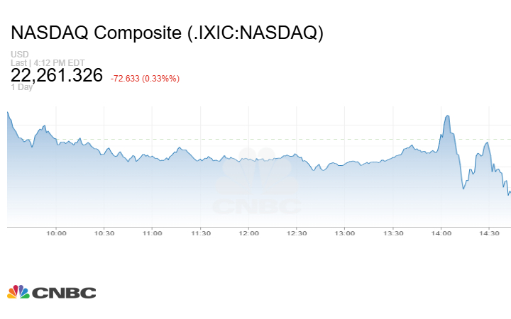 وتراجع مؤشر Nasdaq المركب عند الإغلاق بنحو 72.63 نقطة أو بنسبة 0.33% إلى 22261.33 نقطة.