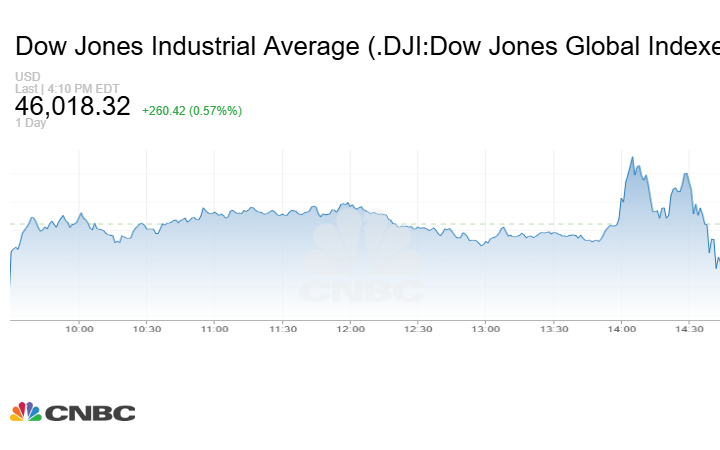 ارتفع مؤشر Dow Jones الصناعي بنحو 260.42 نقطة أو بنسبة 0.57% عند إغلاق تعاملات الأربعاء إلى 46018.32 نقطة.