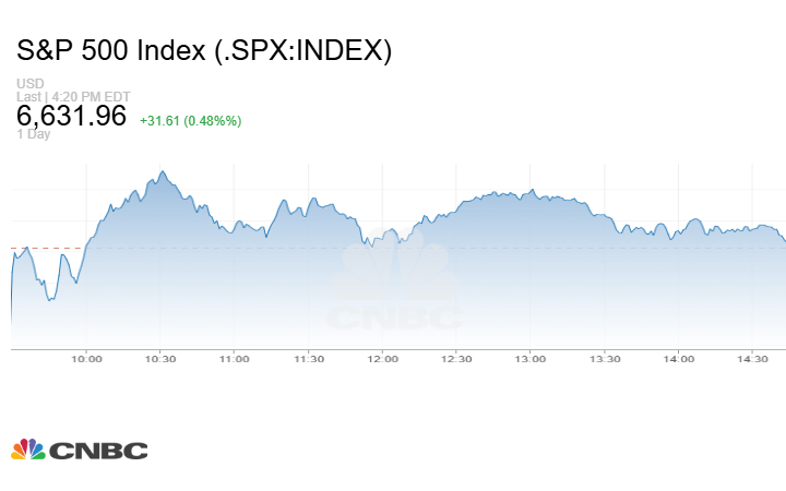 كما أغلق مؤشر S&P 500 التعاملات على صعود 31.61 نقطة أو بنسبة 0.48% إلى 6631.96 نقطة.