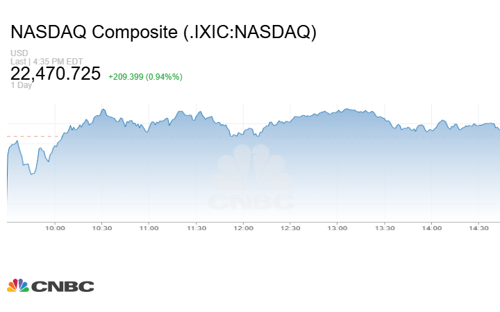 وزاد مؤشر Nasdaq المركب عند الإغلاق بنحو 209.40 نقطة أو بنسبة 0.94% إلى 22470.73 نقطة.