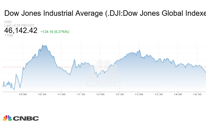 ارتفع مؤشر Dow Jones الصناعي بنحو 124.10 نقطة أو بنسبة 0.27% عند إغلاق تعاملات الخميس إلى 46142.42 نقطة.