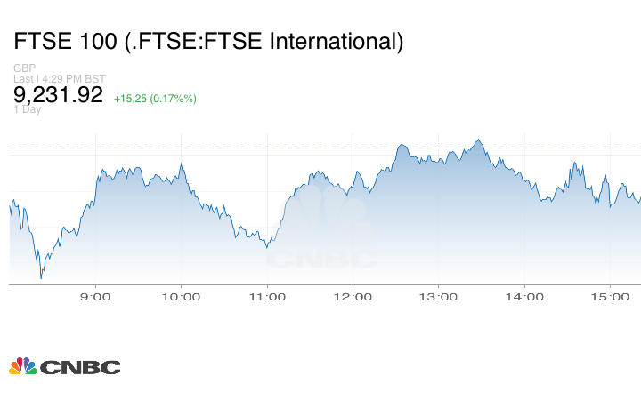 وأغلق مؤشر فوتسي 100 البريطاني مرتفعاً بنسبة 0.1% ليصل إلى 9231.92 نقطة،.