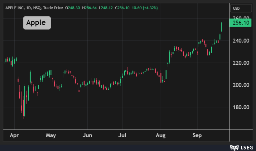 وجاءت هذه المكاسب بعد أن رفعت Wedbush سعرها المستهدف للسهم من 270 دولاراً إلى 310 دولارات بفضل مؤشرات طلب قوية على هاتف iPhone 17.