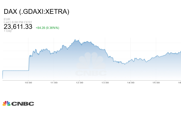 كما أغلق مؤشر DAX الألماني الجلسة على صعود 84.28 نقطة أو بنسبة 0.36% إلى مستوى 23611.33 نقطة.