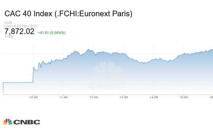 في حين ارتفع مؤشر CAC 40 الفرنسي بنحو 41.91 نقطة أو بنسبة 0.54% عند الإغلاق إلى مستوى 7872.02 نقطة.