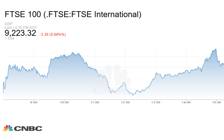 وانخفض مؤشر FTSE 100 البريطاني 3.36 نقطة أو بنسبة 0.04% عند الإغلاق إلى مستوى 9223.32 نقطة.