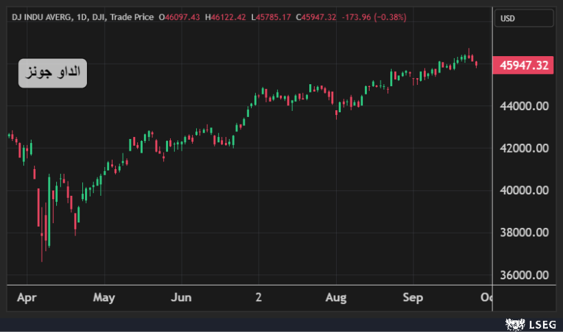 تراجع مؤشر الداو جونز بنسبة 0.4% أي ما يعادل 174 نقطة في جلسة الخميس مسجلاً ثالث خسارة يومية على التوالي ليغلق دون مستويات 46 ألف نقطة.