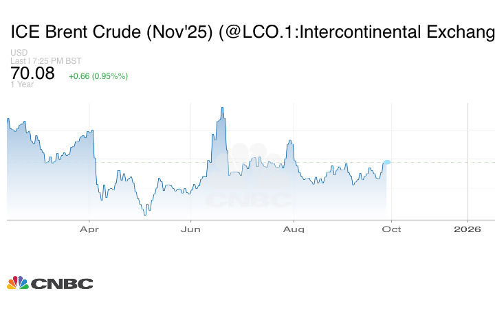 وصعدت العقود الآجلة لخام برنت بمقدار 66 سنتاً أو 0.99% لتسجل عند التسوية 70.03 دولار للبرميل.