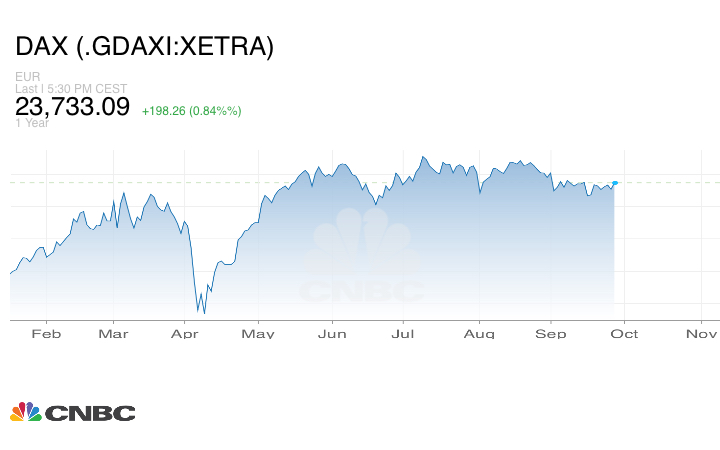 كما أغلق مؤشر DAX الألماني الجلسة على ارتفاع بنسبة 0.79% إلى مستوى 23.719.40 نقطة.