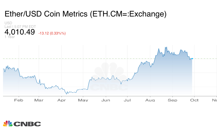 فيما حافظت الإيثر على تراجعها بنسبة 0.38% إلى 4.008.26 دولار.