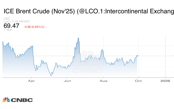 وتراجعت العقود الآجلة لخام برنت إلى 69.39 دولار للبرميل.