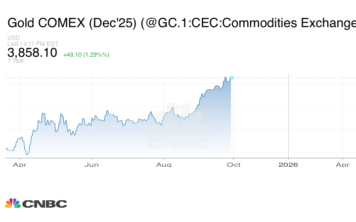 ارتفعت أسعار الذهب، إلى ما فوق 3800 دولار للأونصة للمرة الأولى، يوم الاثنين 29 سبتمبر/ أيلول، مسجلة مستوى قياسياً جديداً مع إقبال المستثمرين على الأصول الآمنة وسط توقعات بخفض أسعار الفائدة الأميركية ومخاوف من إغلاق محتمل للحكومة وتصاعد التوترات الجيوسياسية.