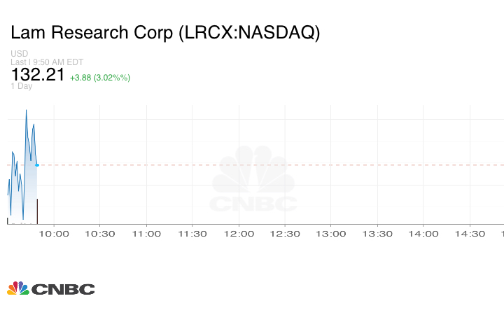 ارتفعت أسهم شركة تصنيع معدات أشباه الموصلات Lam Research بنسبة 3% بعد أن رفع دويتشه بنك توصيته إلى الشراء من "احتفاظ". وأوضح البنك أن لام ريسيرش ستستفيد من تحسن التوقعات لمعدات تصنيع الرقائق وتقييم يتماشى إلى حد ما مع نظرائها.