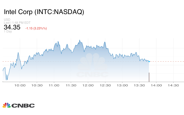 سهم إنتل ينخفض بنحو 3%، خلال تعاملات الاثنين 29 سبتمبر/ أيلول ليفقد بعضاً من زخمه بعد الارتفاع الكبير الذي دفعه إلى منطقة ذروة الشراء، وبعد أن سجل ارتفاعاً بنسبة تقارب 80% منذ بداية العام