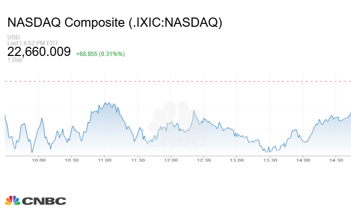 وزاد مؤشر Nasdaq المركب عند الإغلاق بنحو 68.86 نقطة أو بنسبة 0.31% إلى 22660.01 نقطة.