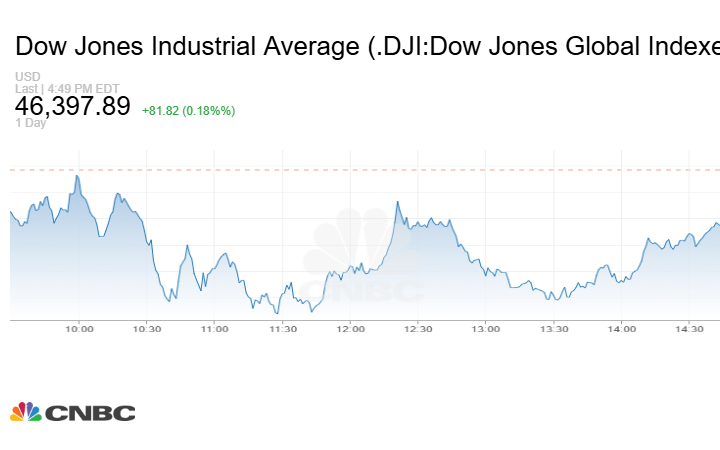 ارتفع مؤشر Dow Jones الصناعي بنحو 81.82 نقطة أو بنسبة 0.18% عند إغلاق تعاملات الثلاثاء إلى 46397.89 نقطة.