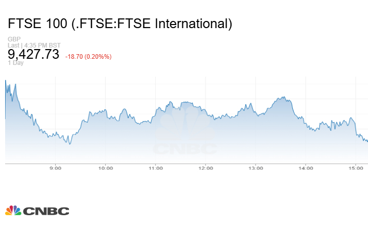 بينما تراجع مؤشر FTSE 100 البريطاني 18.70 نقطة أو بنسبة 0.20% عند الإغلاق إلى مستوى 9427.73 نقطة، بعد أن لامس أعلى مستوى قياسي له خلال جلسة الأربعاء.