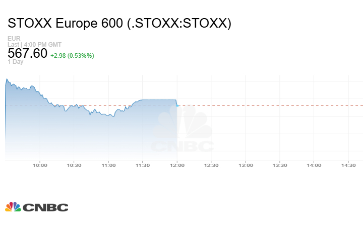 وارتفع مؤشر Stoxx 600 الأوروبي 2.98 نقطة أو بنسبة 0.53% إلى مستوى 567.60 نقطة في نهاية التعاملات، وذلك بعد أن سجل أعلى مستوى له على الإطلاق خلال الجلسة.